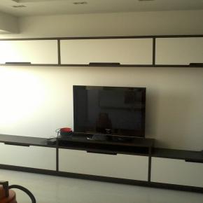 Интересное решение для создания мебели для гостиной с балконом в едином стиле.