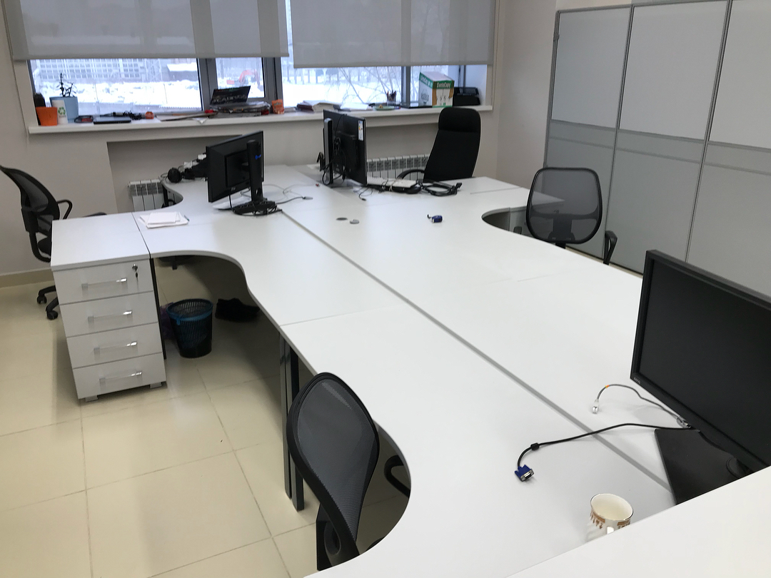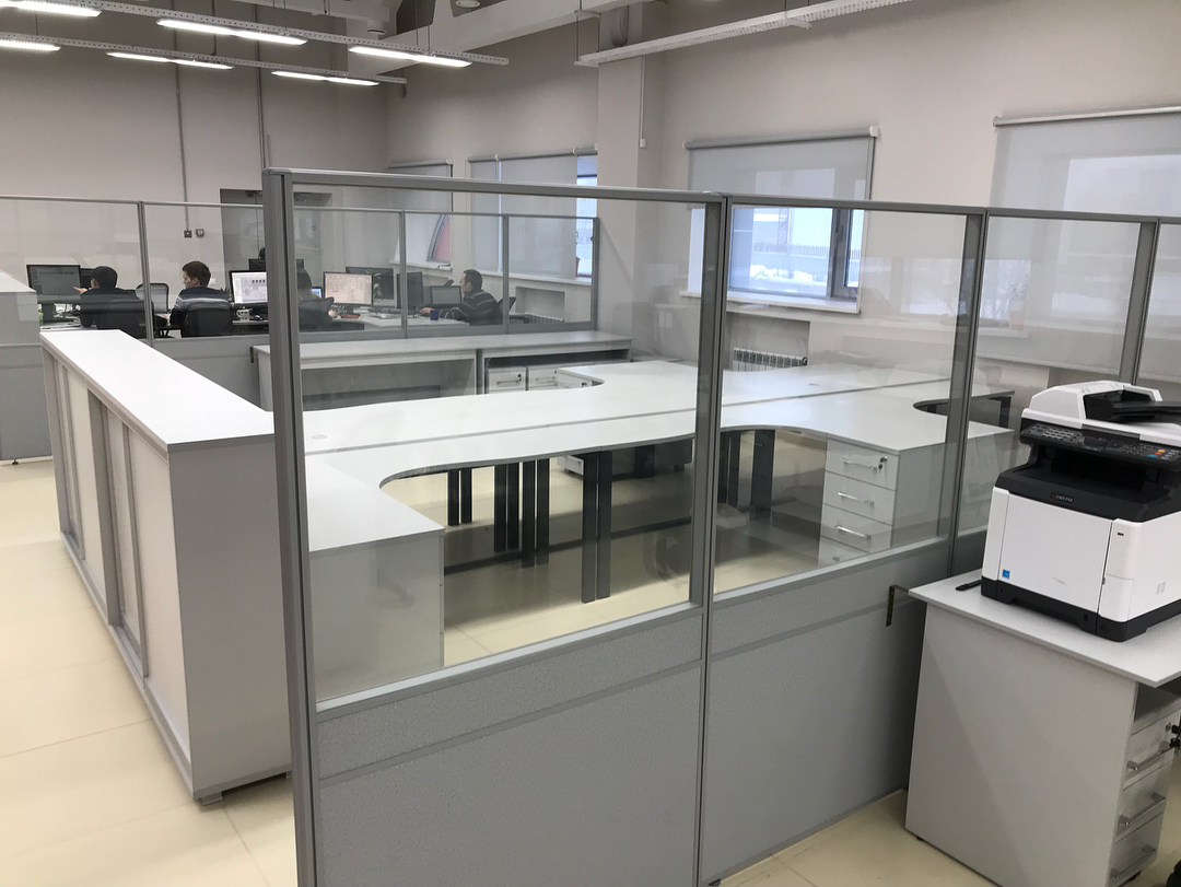 В данном случае наша компания укомплектовала офис на 111 рабочих мест письменными столами на металлических опорах, тумбами, шкафами-купе, мобильными перегородками, креслами для персонала. Офис расположен на расстоянии, в более чем 500 км от нашего производства. И даже с учетом заложенной транспортной логистики и прочих расходов, мы смогли уложиться в требуемый бюджет и сроки поставки.