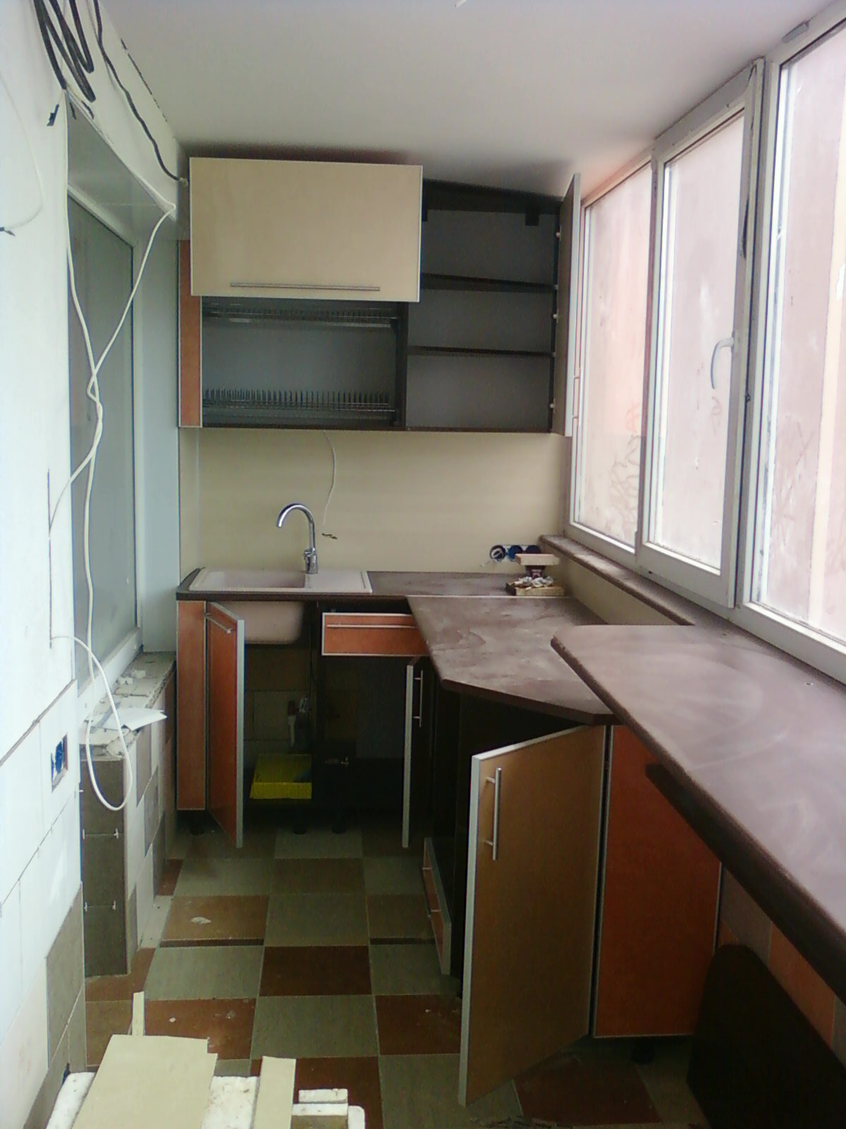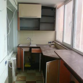 Всё большей популярностью среди владельцев небольших квартир с просторными лоджиями пользуется перенос кухни на лоджию. Это освобождает место под еще одну жилую комнату и придает квартире креатива и эксклюзивности. Главное – правильно расположить мебель, чтобы кухня радовала не только внешним дизайном и функциональностью, но и не загромождала собой все свободное место. По признанию клиента, на представленном проекте нам удалось достичь этого баланса.