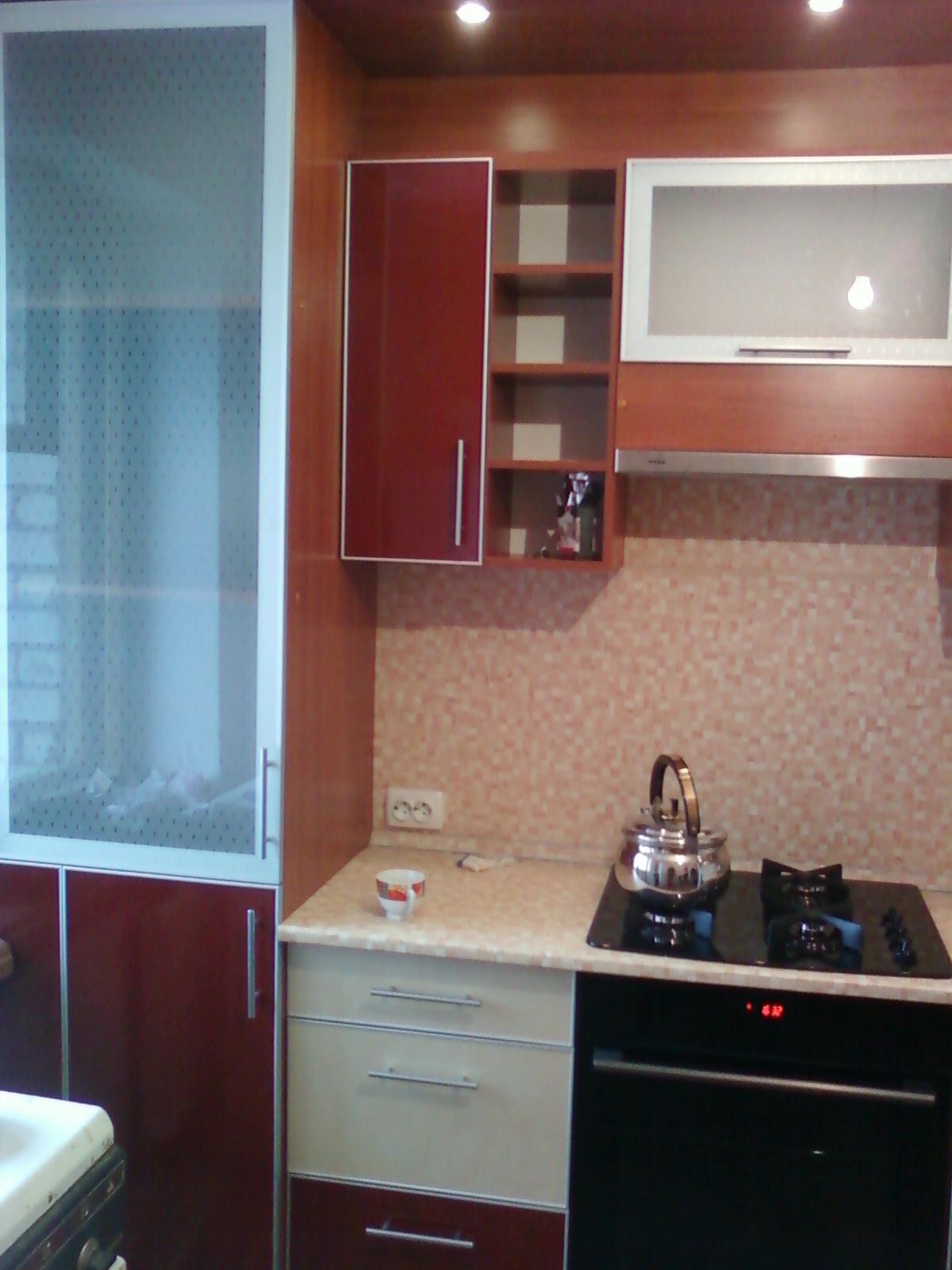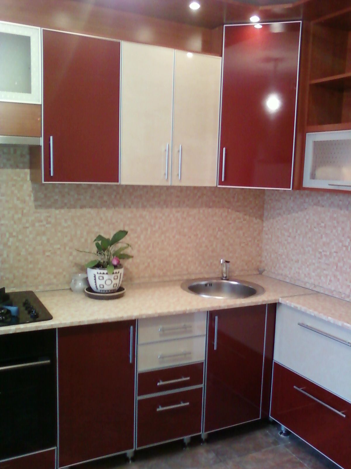Кухня в бордово-молочных тонах