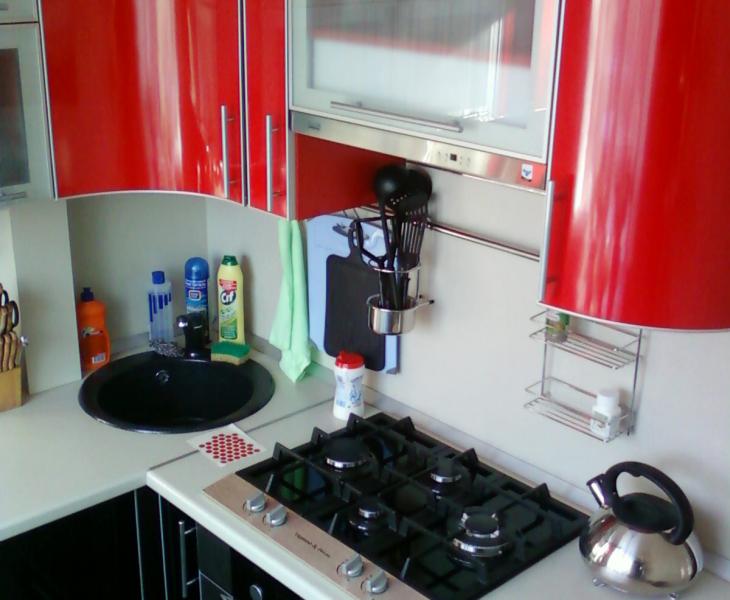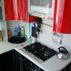 Яркая кухня без сомнений подойдет человеку, уверенному в себе, стремящемуся выделить кухню в общем дизайне квартиры. Насыщенный красный, черный и белый цвета в сочетании дают очень стильный и современный дизайн кухонного гарнитура.