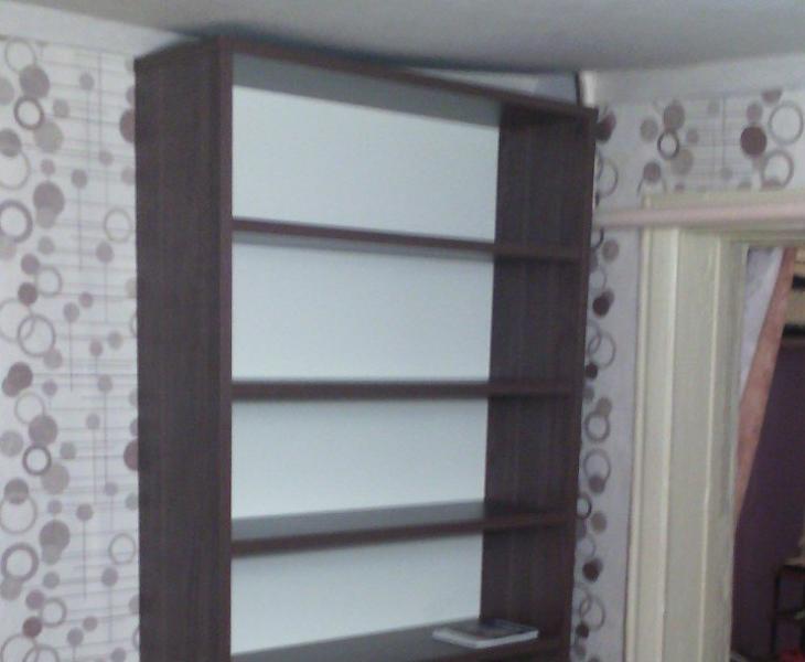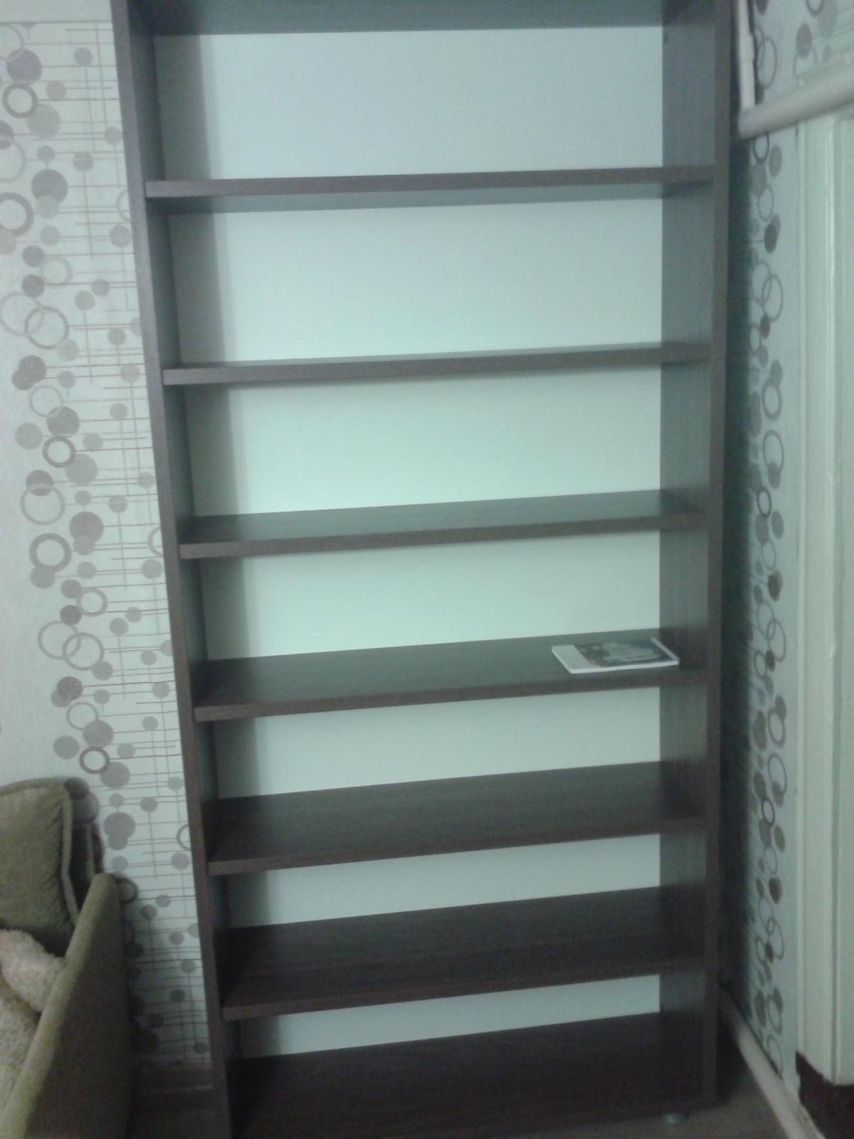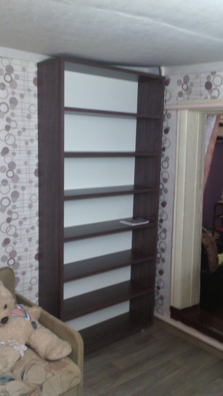 Выполнен из толстой плиты ЛДСП, что позволяет выдерживать существенные нагрузки и исключает вероятность провиса полок.